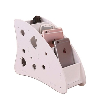 White Remote Control Holder 4 Compartments Carving Mini Desktop Plastic Storage Boxes Remote Control Storage Rack